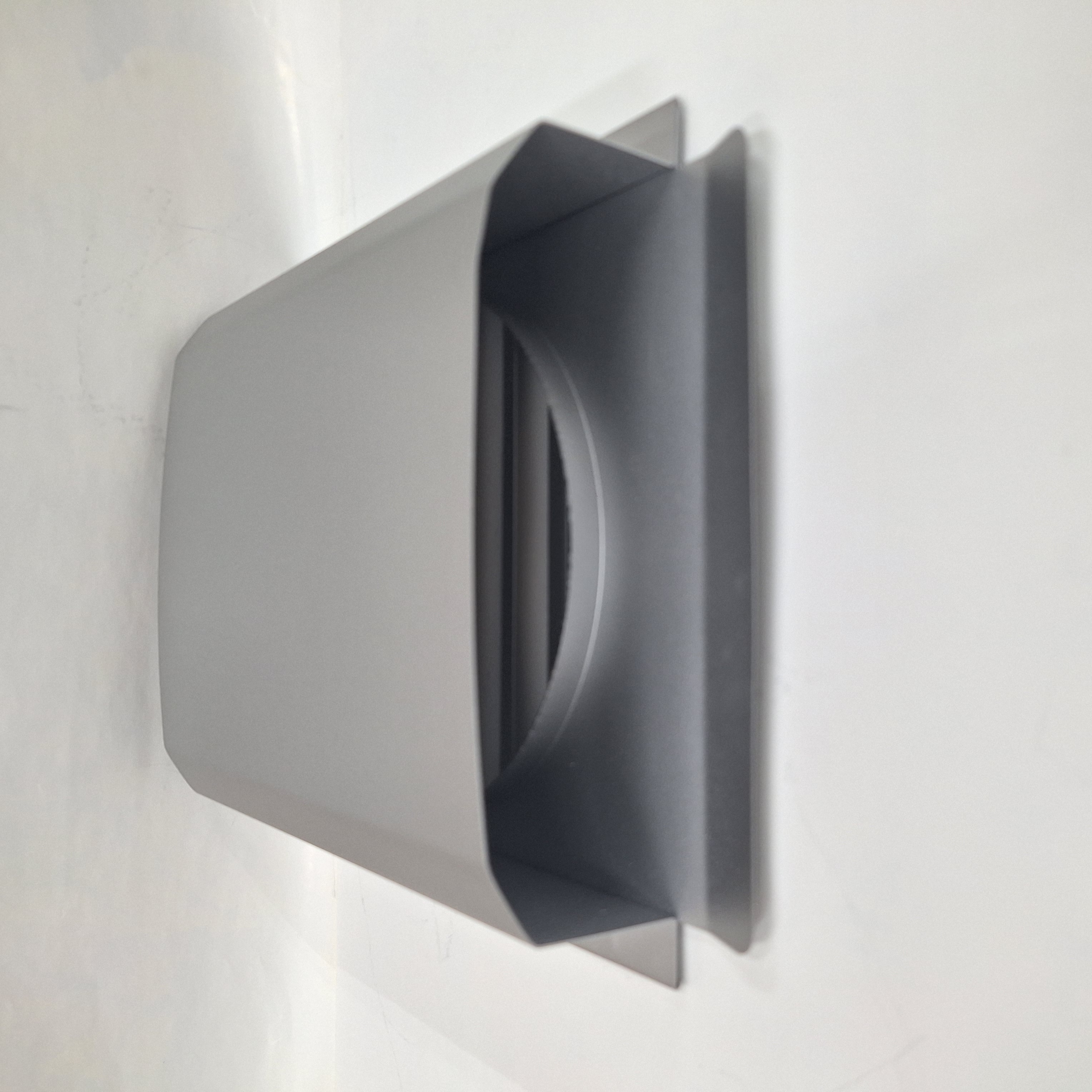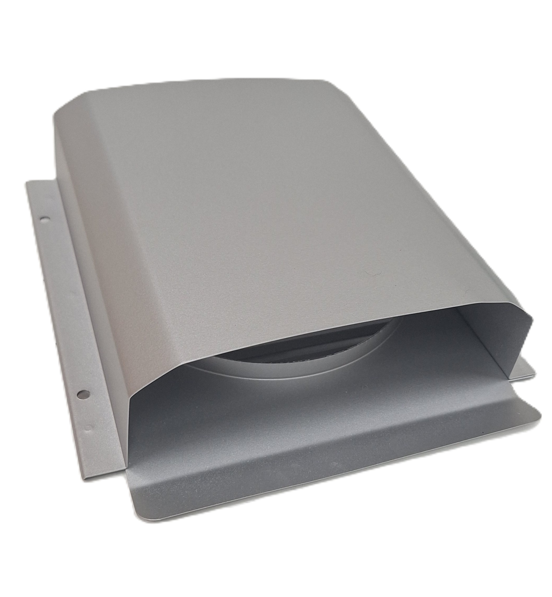 配合各種建築風格外觀精緻簡約大方美觀,扁平尺寸設計貼合牆面也可隱藏於隔柵內使用, 包含一般住宅,公寓,大樓等等對外排氣皆適用,使用在廚房、衛浴及有對外通風孔處皆可。 可使用在RC牆、花崗石牆、玻璃、帷幕牆、花格籬、浪板等材質上使用。 外觀顏色可依客戶指定塗料、顏色(配合大樓外牆磚顏色)烤漆, (1)耐候烤漆(2)液體烤漆(3)氟碳烤漆(4)粉體烤漆(5)金屬亮面(6)毛絲霧面。 安裝方法: 將外氣罩背面通用W固定腳架或頸部插入套管中,在周圍塗上一圈矽利康(0.5mm以上)外加螺絲孔鎖付加強固定於外壁防止脫落。 |