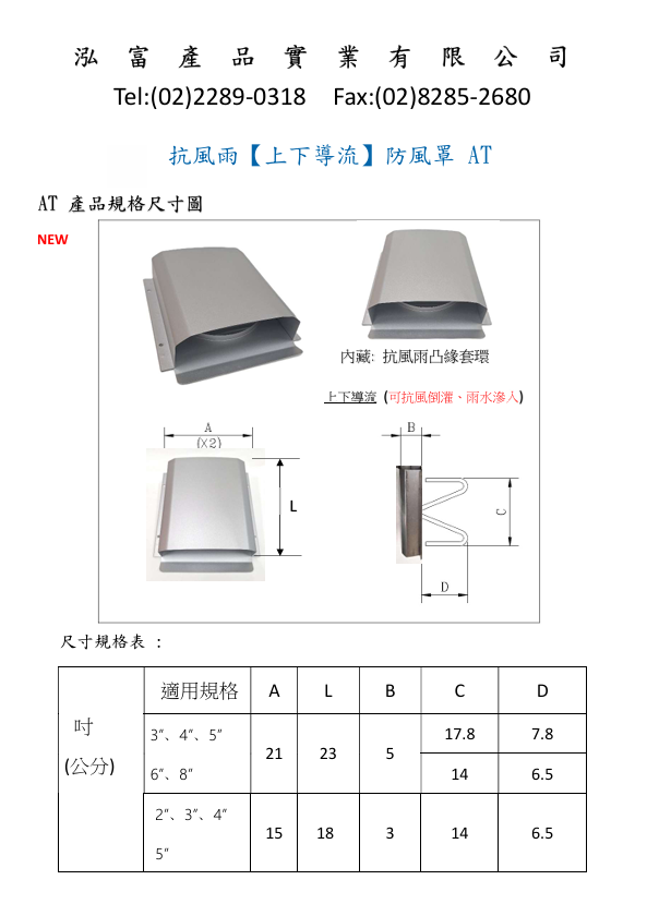 | 型號: | 專利 防颱 抗風雨型(上下導流)排氣罩-AT |